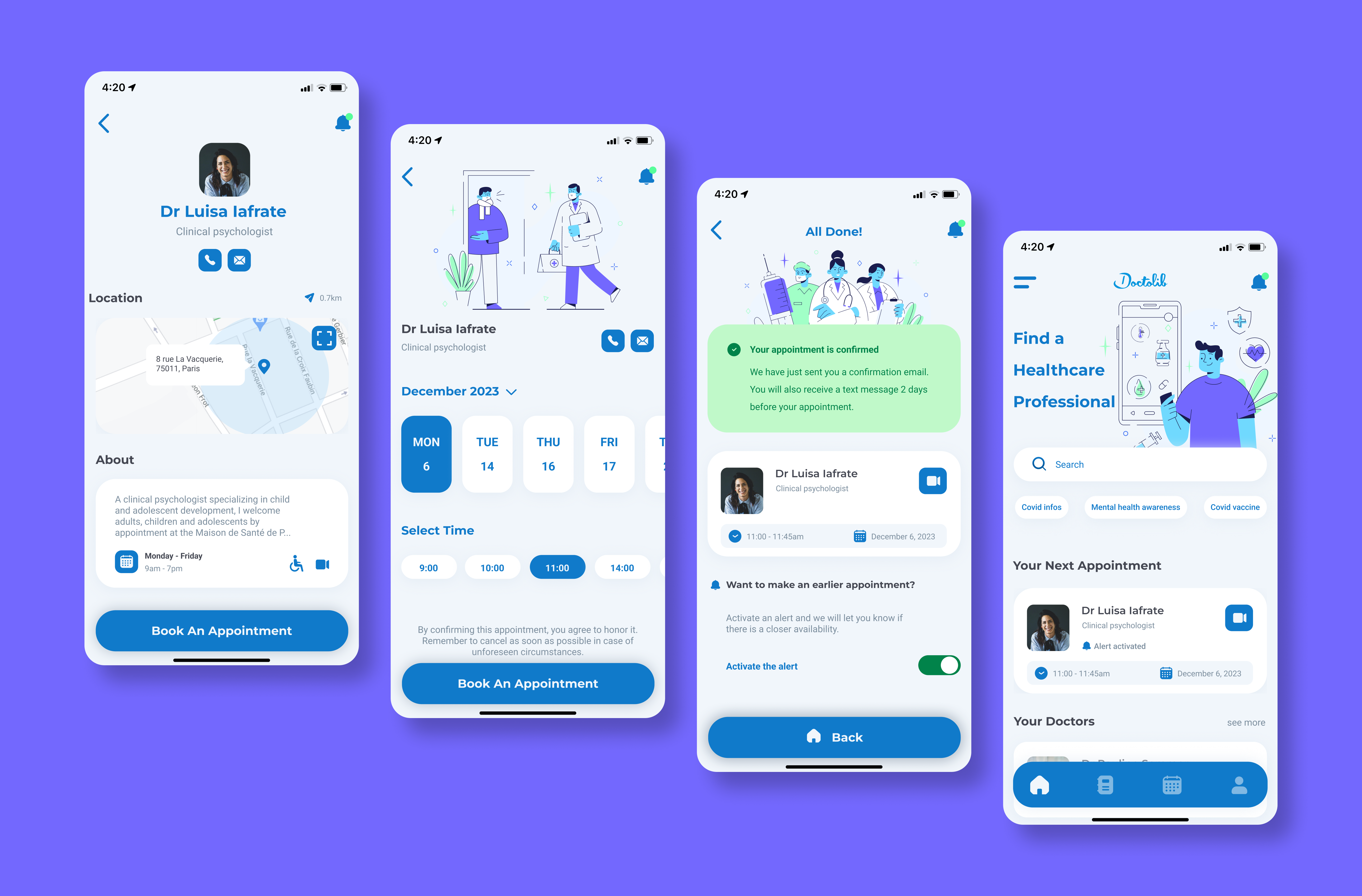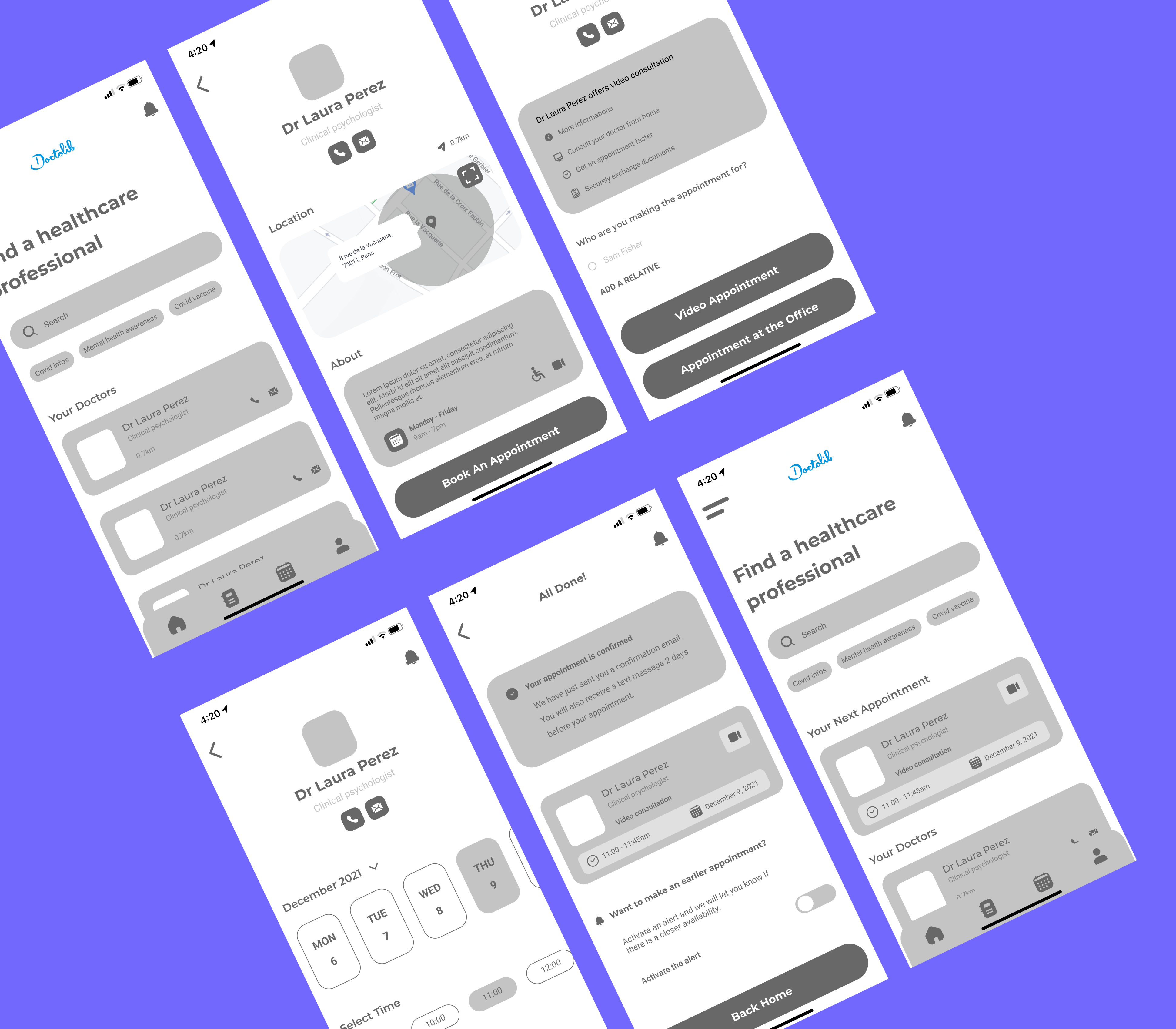 Feedback from early usability testing led to adjustments in spacing, labeling, and navigation paths. For instance, the appointment booking process was further refined based on user input to ensure clarity and reduce cognitive load.