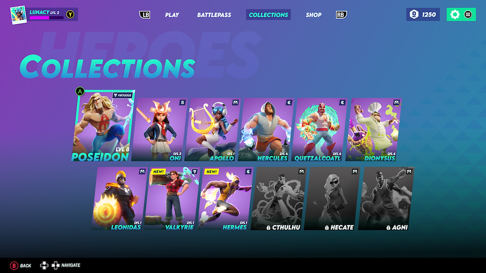 For the UI, I wanted something modern and pop to showcase the unique designs of the gods and goddesses characters.
