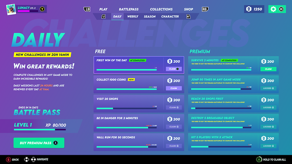 My main inspiration for the user experience of the game was Fortnite. The game needed to feel familiar to use, be smooth and easy to navigate.