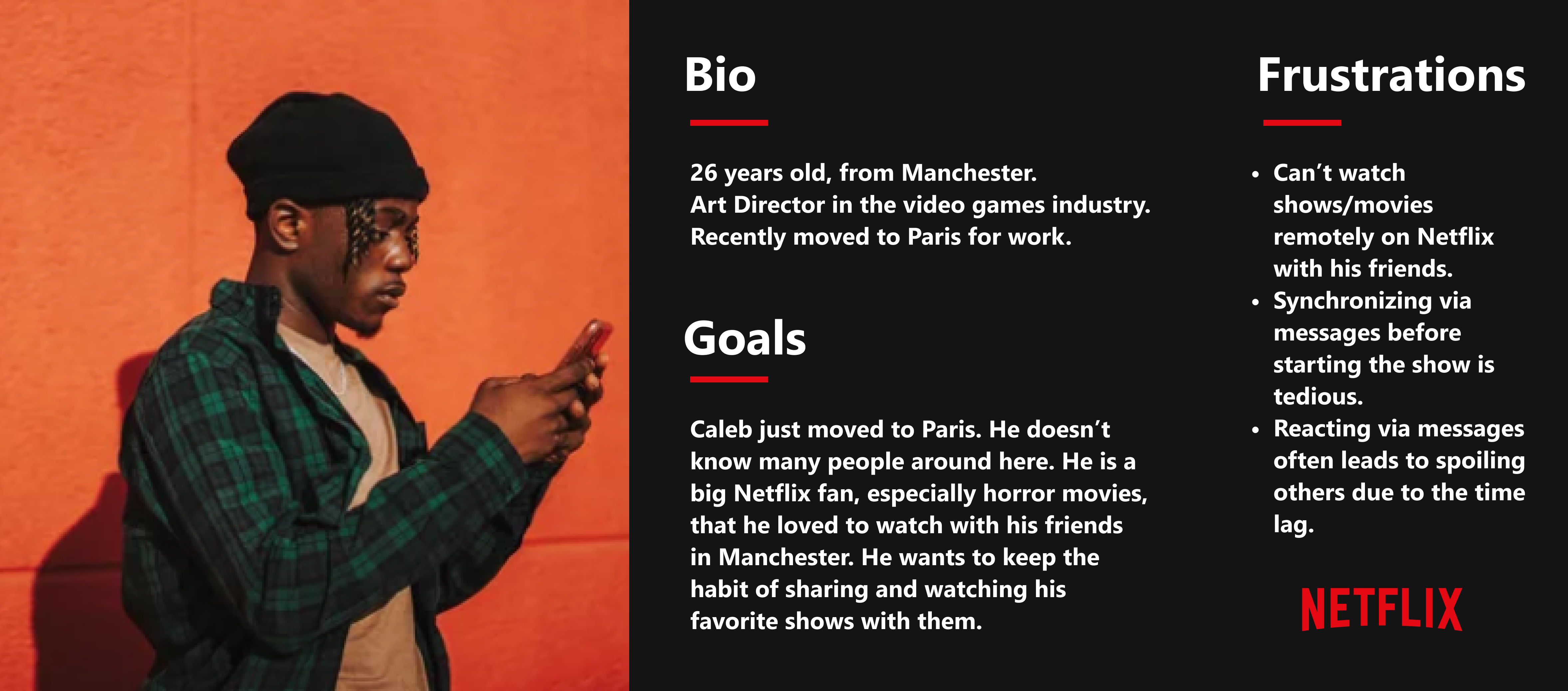 To understand the scope of this new feature and what the users want from it, I conducted 5 remote user interviews. I wanted to know their habits with Netflix, how often they use the app, what they enjoy, dislike and what they would love to see there.