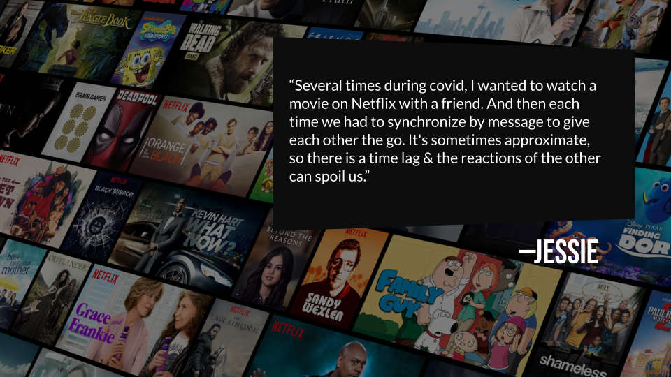 How might we help Netflix users watch movies and shows remotely with their friends and family?